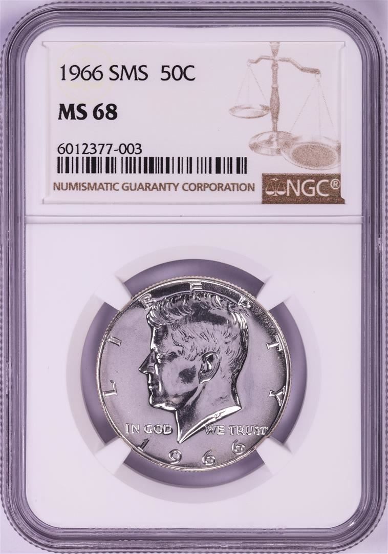 One 1966 SMS Kennedy Half Dollar Coin NGC MS68. NGC Certified.