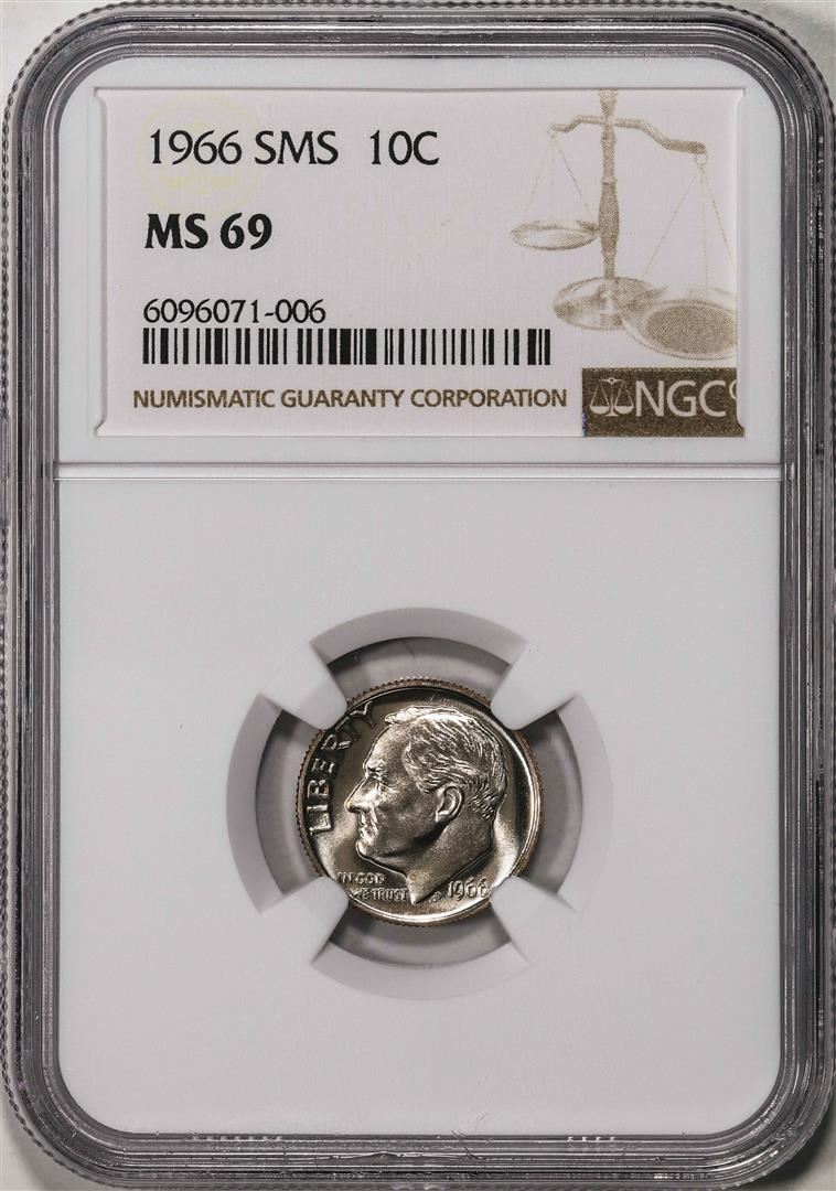 One 1966 SMS Roosevelt Dime Coin NGC MS69. NGC Certified.