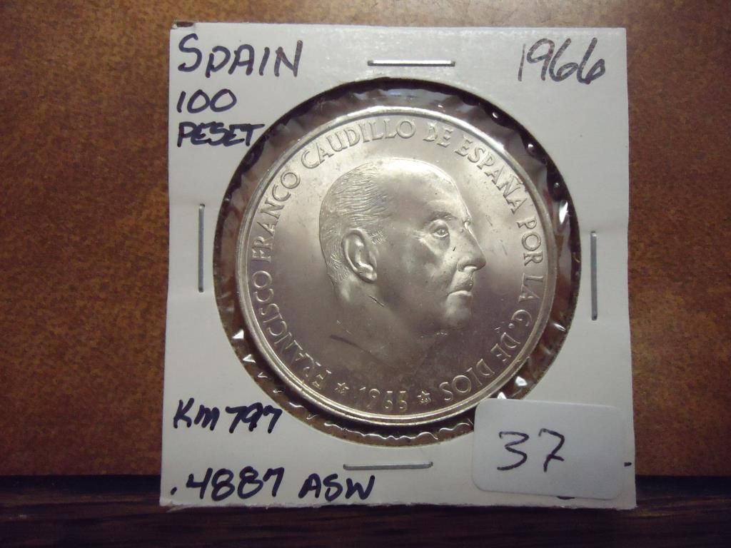 1966 SPAIN SILVER 100 PTAS UNC .4887 OZ. ASW