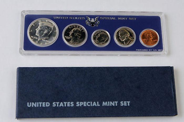 In 1964, just when the mint was removing 90% silver coins from circulation, and the us was having a coin shortage, the Mint announced that beginning in 1965, no Proof Sets, or Mint Sets would be produced, Instead they would be making a Special Mint Set. Special Mint Set coins were not proofs, and were not uncirculated, Mint State pieces. Dies for the coins were over polished, while the planchet themselves were not polished. The resulting SMS coins have a brilliant, proof like appearance, much nicer than the run-of-the-mill circulation coins. In 1965 these sets were released in the Traditional Mint Cellophane and White Envelope and in 1966 and 1967 they were packaged in hard, pale blue plastic holders. Note, the set contains a 40% Half Dollar. Estimated Value $20