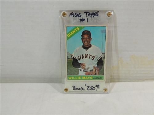 1966 TOPPS #1 BASEBALL PLAYER CARD WILLIE MAYS. UPPER LEFT HAND CORNER CREASE. AS SHOWN. VIEW PICTURE FOR DETAIL.
