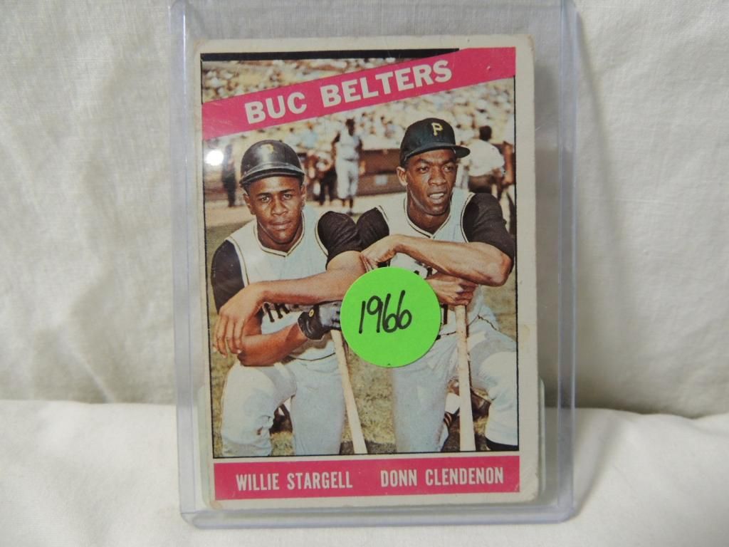 1966 TOPPS BUC BELTERS WILLIE STARGELL DONN GLENDENON. BASEBALL CARDS. TRADING CARDS. COLLECTIBLE. SPORTS MEMORABILA. GOOD CONDITION. AS SHOWN. SEE PHOTO FOR MORE DETAILS.