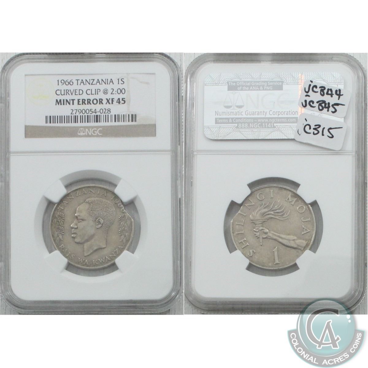 1966 Tanzania 1-Shilling MINT ERROR NGC Certified XF 45 - Curved Clip