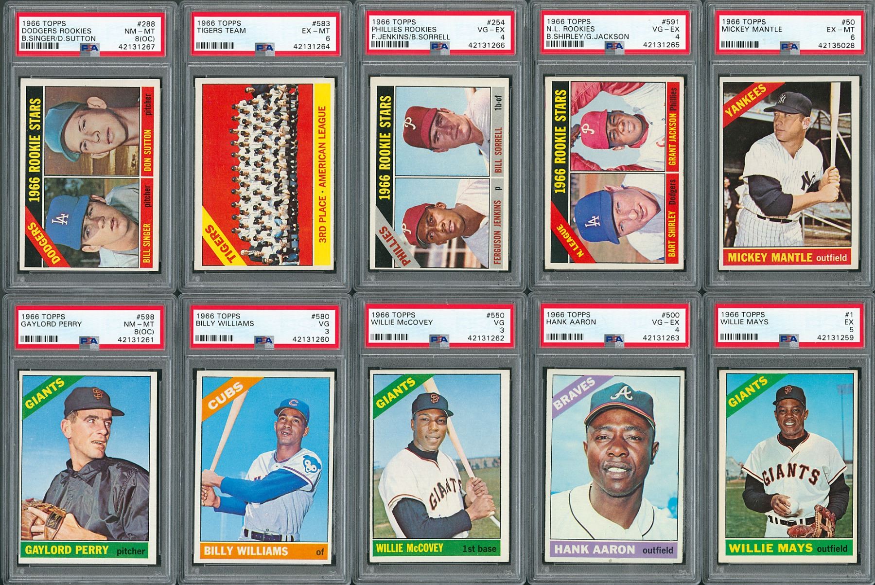Ungraded Cards - #30 Rose (VG), 36 Hunter (EX), 70 Yastrzemski (VG/EX), 72 Perez (EX), 100 Koufax (VG/EX), 110 Banks (VG), 120 Killebrew (VG/EX), 125 Brock (EX), 126 Palmer RC (VG), 160 Ford (VG/EX), 195 Morgan (EX/MT), 200 Mathews (EX/MT), 215 Clemente/Aaron/Mays (EX), 255 Stargell (EX/MT), 300 Clemente (VG/EX), 310 F. Robinson (EX), 320 Gibson (VG/EX), 365 Maris (EX), 390 B. Robinson (VG/EX), 410 Kaline (EX/MT), 420 Marichal (VG/EX), 430 Drysdale (EX), 469 Murcer RC (EX), 526 Twins (EX), 530 Roberts (EX), 535 Davis SP (VG/EX) and 540 McLain (VG/EX).