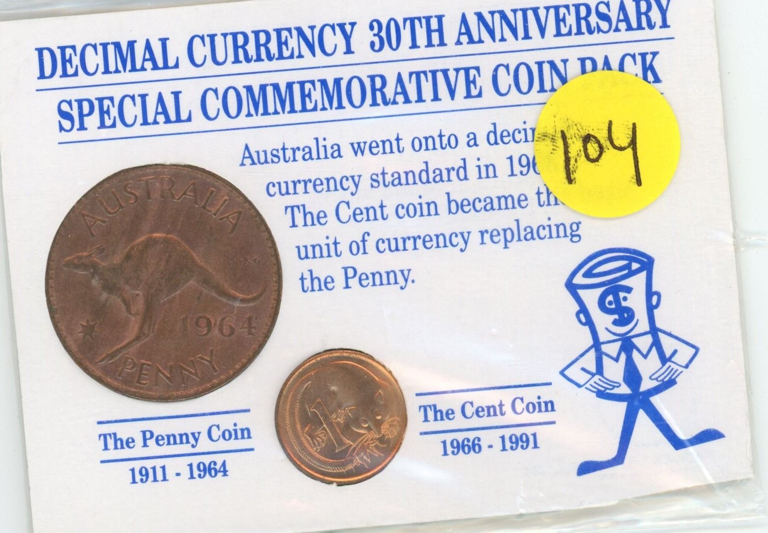 1966 decimal currency 30th anniversary of first penny and last cent coin