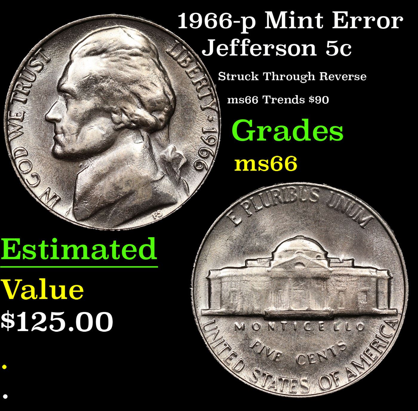 1966-p Mint Error Jefferson Nickel 5c Grades GEM+ Unc.