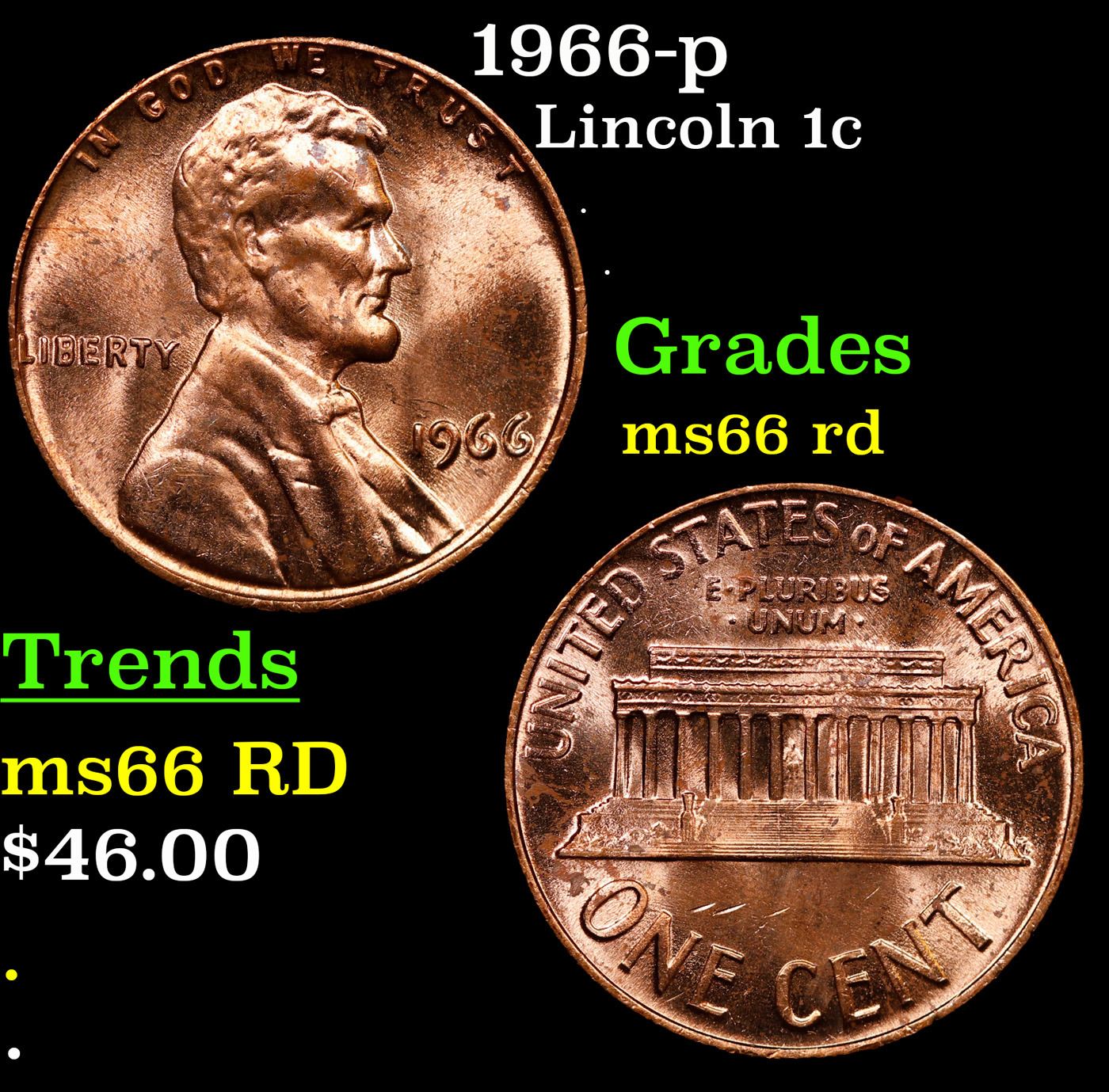 1966-p Lincoln Cent 1c Grades GEM+ Unc RD.