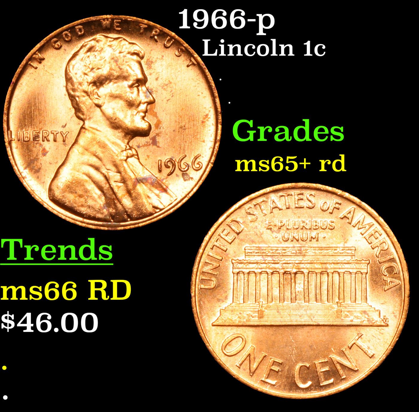 1966-p Lincoln Cent 1c Grades Gem+ Unc RD.