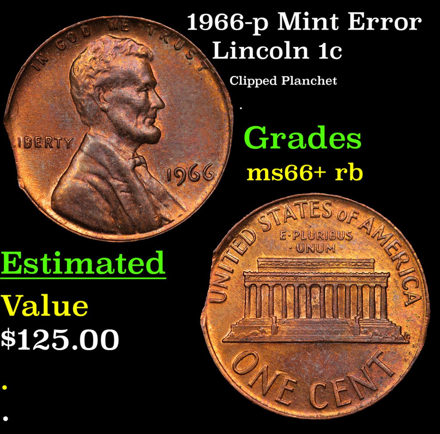 1966-p Mint Error Lincoln Cent 1c Grades GEM++ RB.