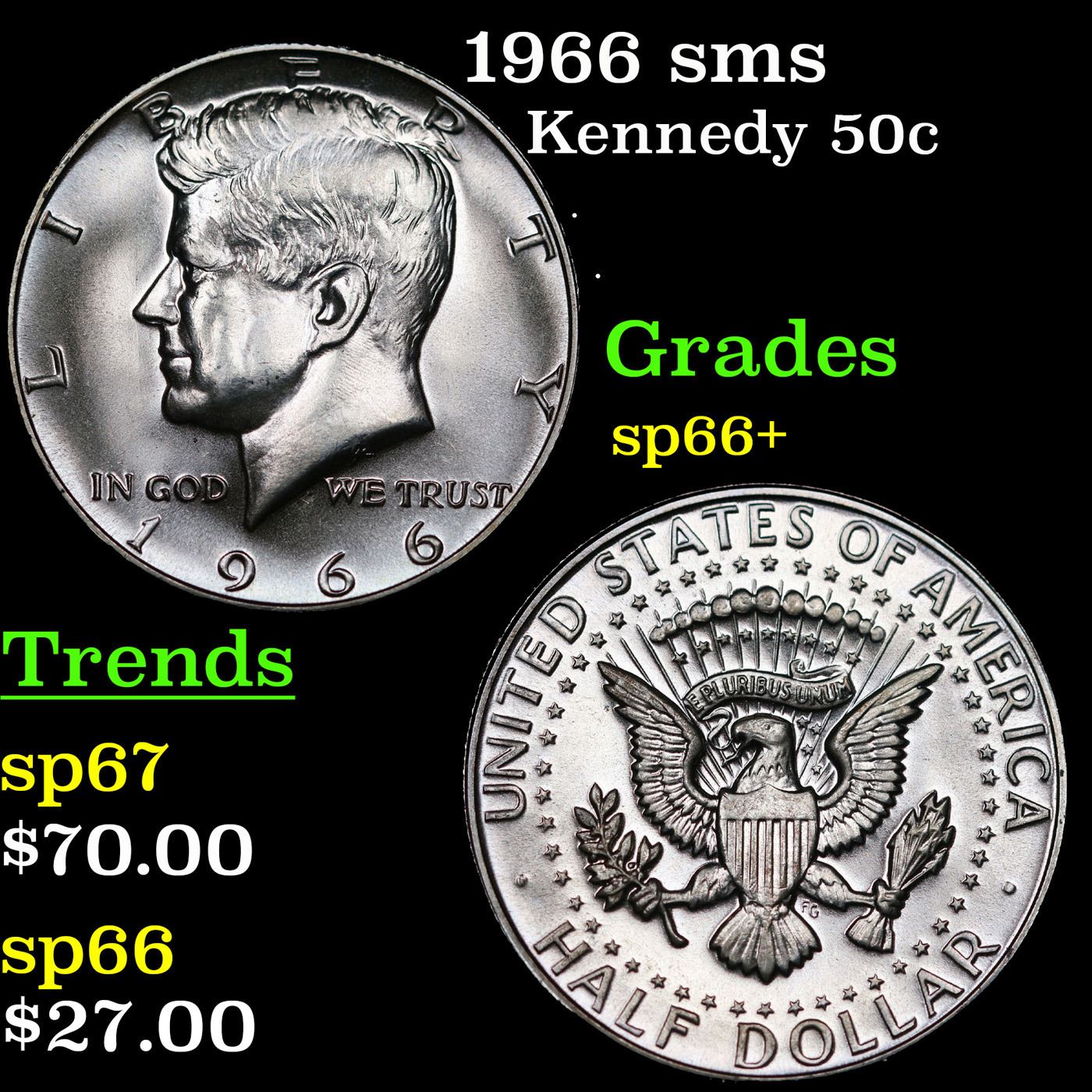 1966 sms Kennedy Half Dollar 50c Grades sp66+.
