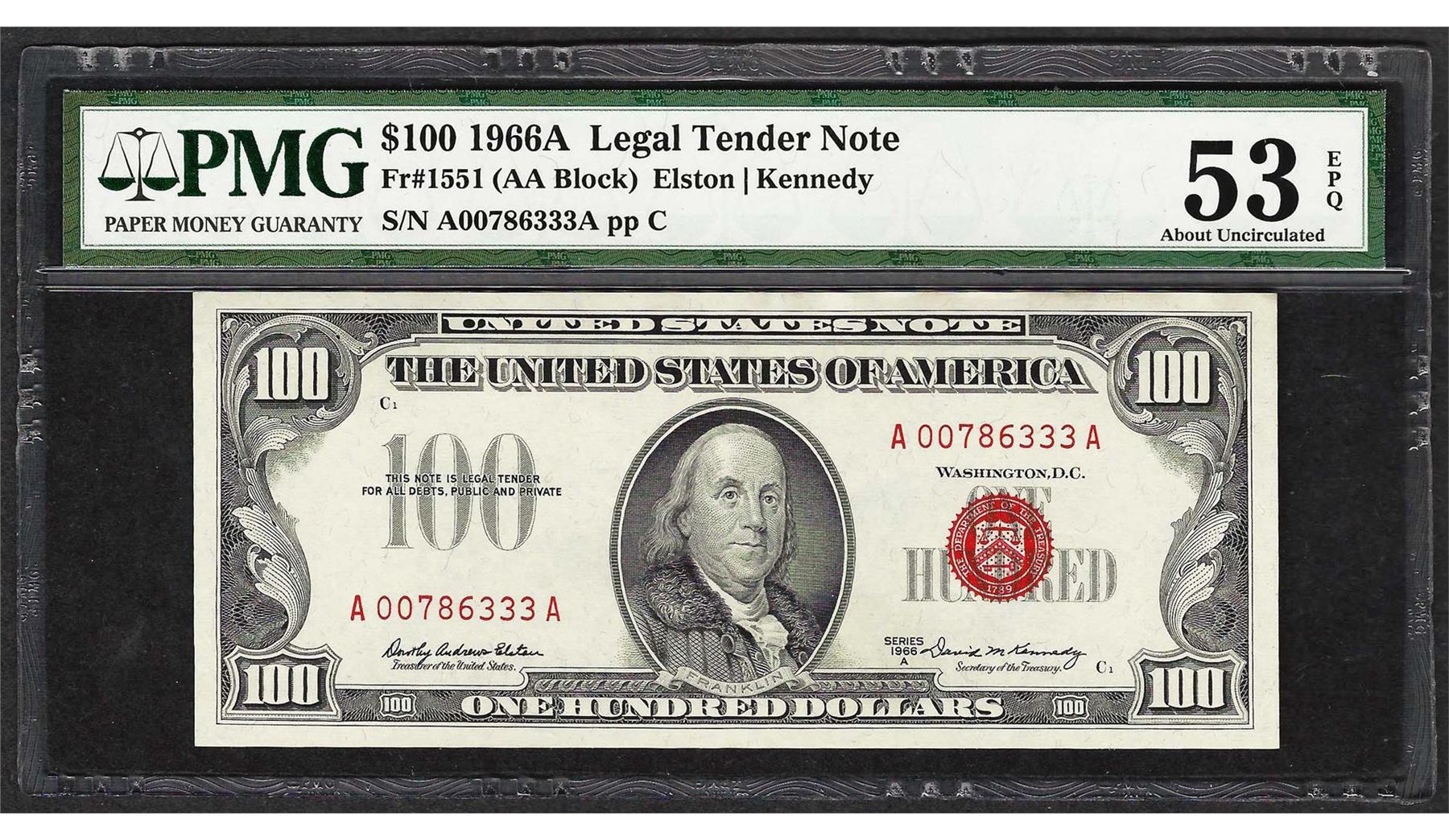 1966A $100 Legal Tender Note Fr.1551 PMG About Uncirculated 53EPQ