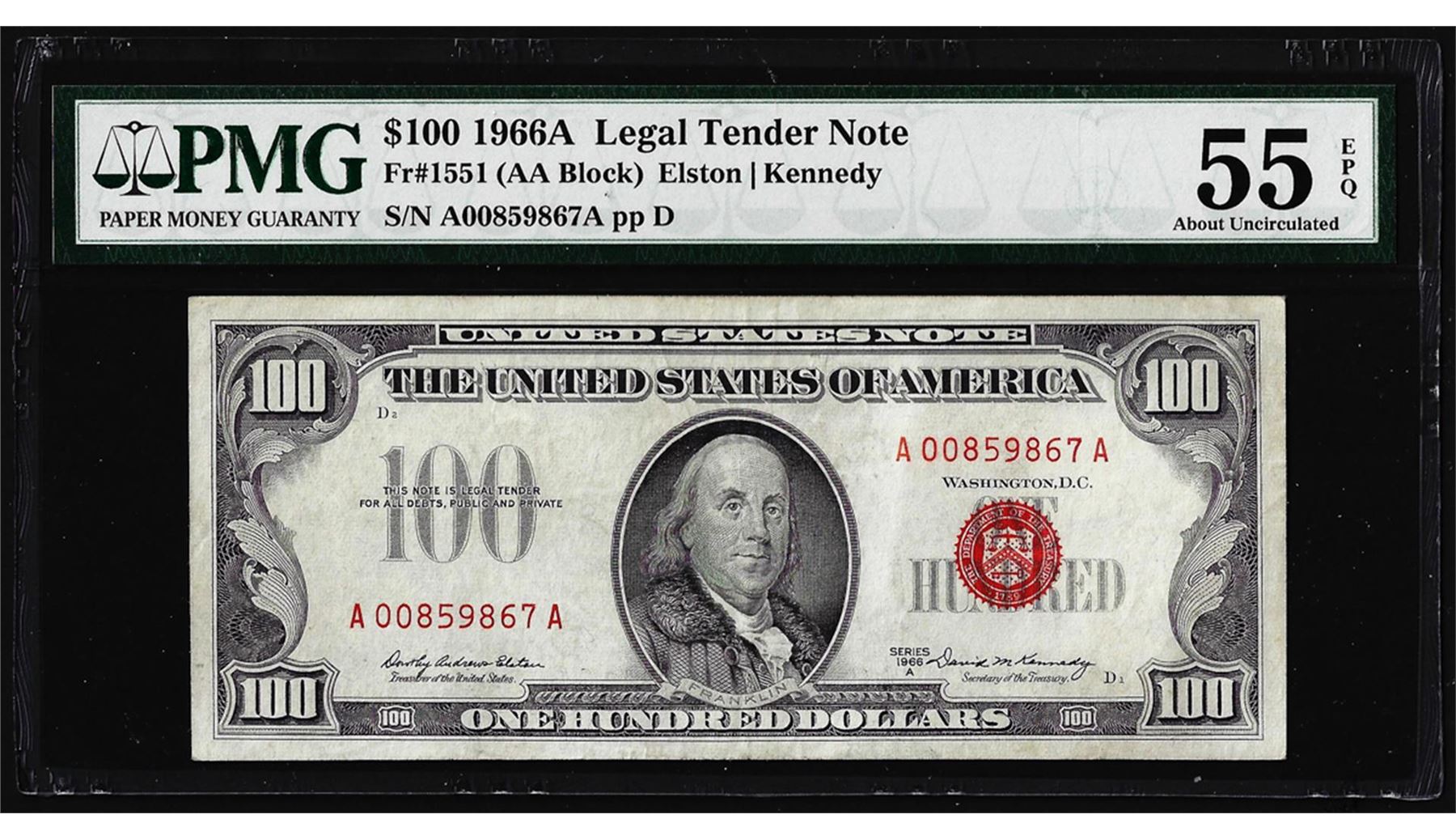 1966A $100 Legal Tender Note Fr.1551 PMG About Uncirculated 55EPQ