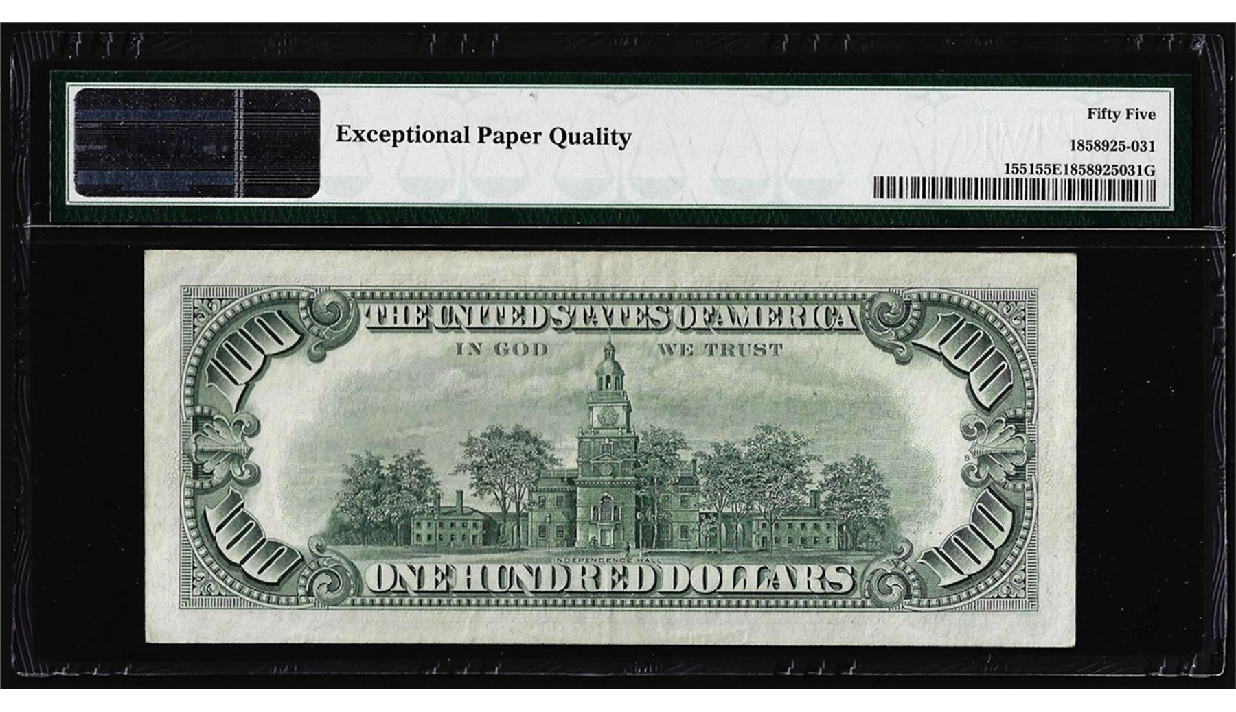 One 1966A $100 Legal Tender Note Fr.1551 PMG About Uncirculated 55EPQ. PMG Certified.