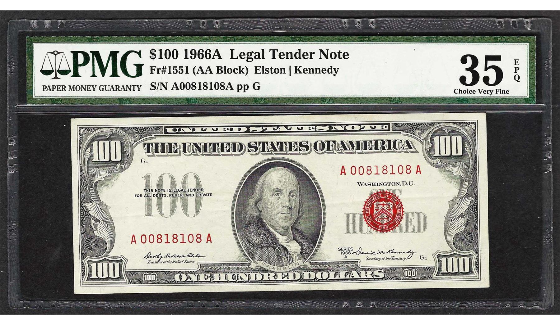 One 1966A $100 Legal Tender Note Fr.1551 PMG Very Fine 35EPQ. PMG Certified.