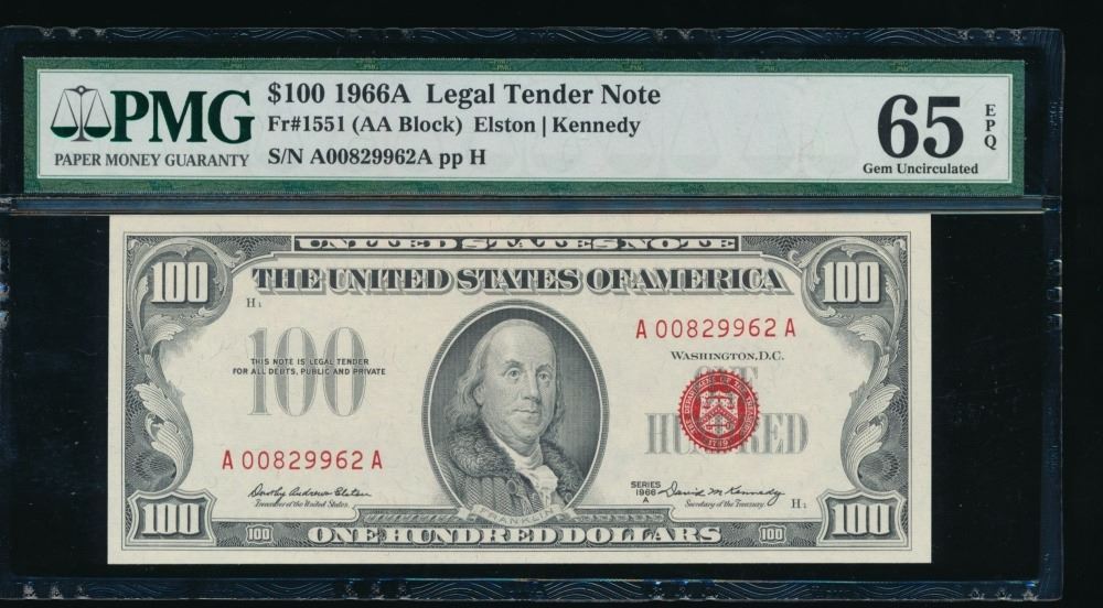One 1966A $100 Legal Tender Note PMG 65EPQ.