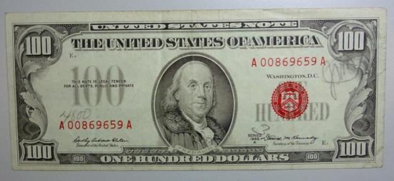 1966a $100 US note red seal VF