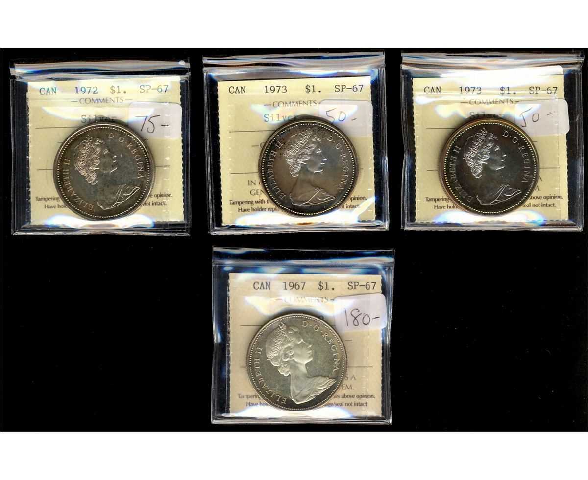 1967 $1, 1972 & 1973(2) Silv ICCS SP67. Lot of 4 coins.