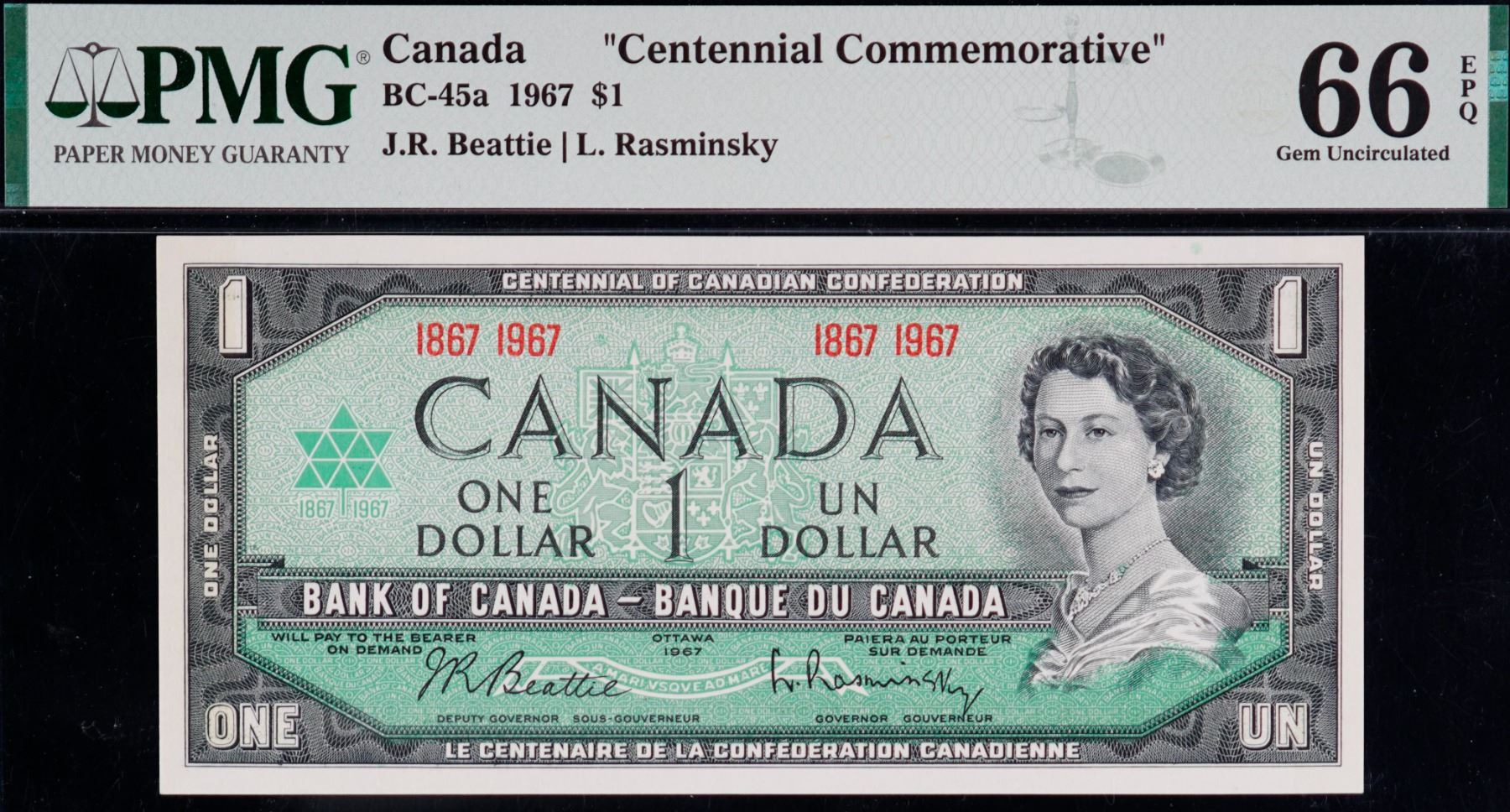 1967 $1 BC-45a 1867-1967 PMG Superb Gem Uncirculated-66 "Centennial Commemorative"