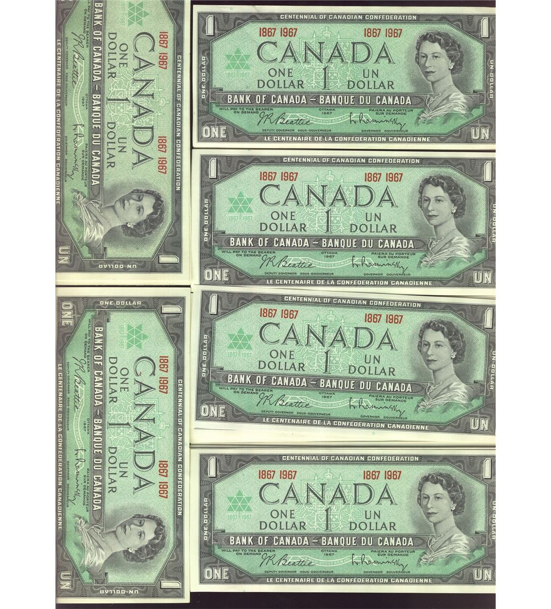 1967 $1 BC-45a Commemorative issues. Lot of 67 Crisp UNC notes.
