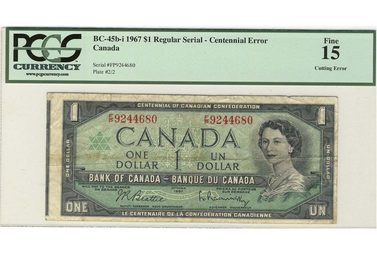 1967 $1 BC-45b-i Error Offset #FP9244680 PCGS F15. Cutting error.