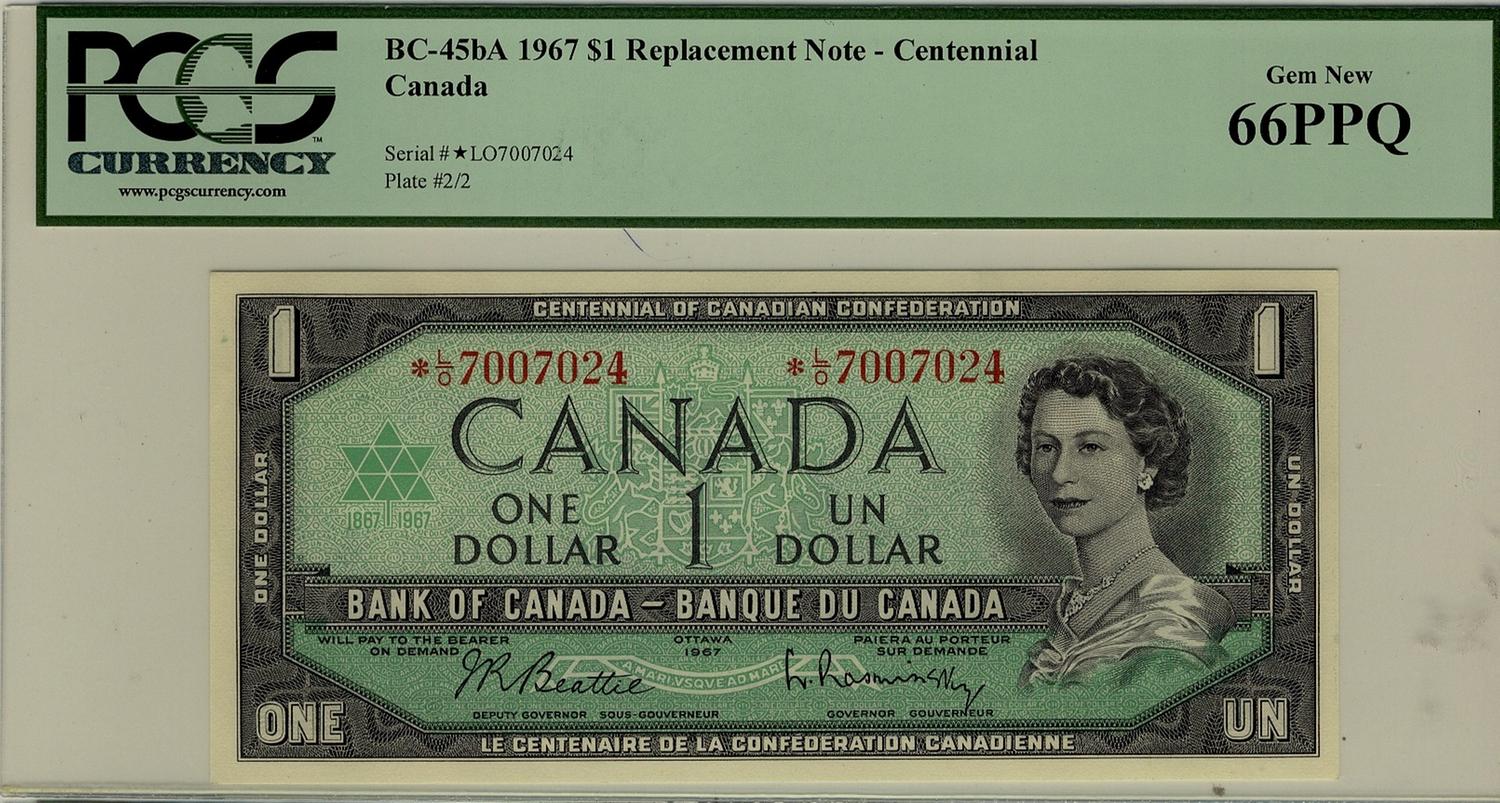 1967 $1 BC-45bA #*LO7007024 PCGS Gem UNC66PPQ.