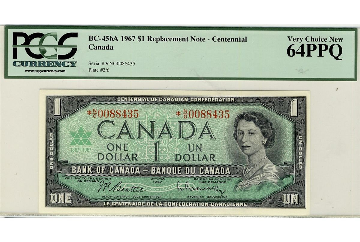 1967 $1 BC-45bA #*N/O0088435 PCGS UNC64PPQ.