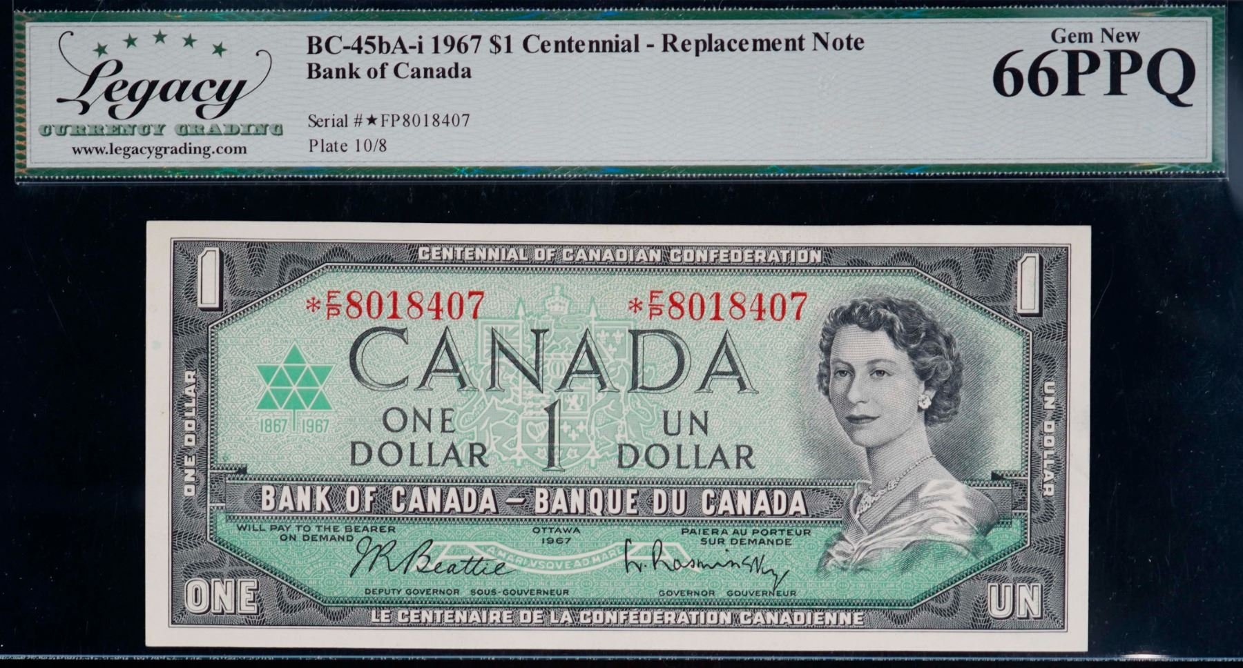 1967 $1 BC-45bA-i #*FP8018407, Legacy Gem Superb Gem Uncirculated-66PPQ.