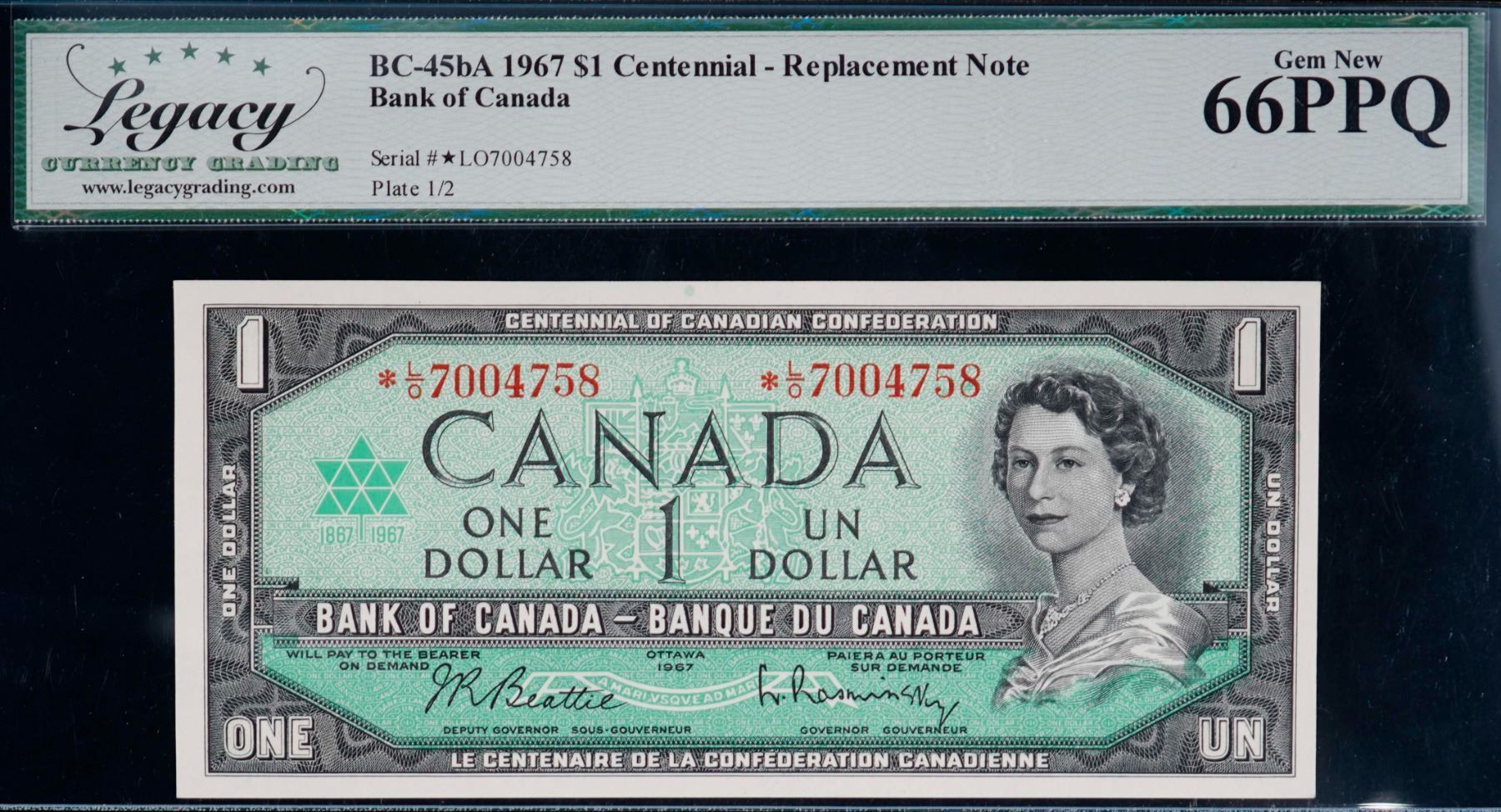 1967 $1 BC-45bA-i #*LO7004758, Legacy Gem Superb Gem Uncirculated-66PPQ.