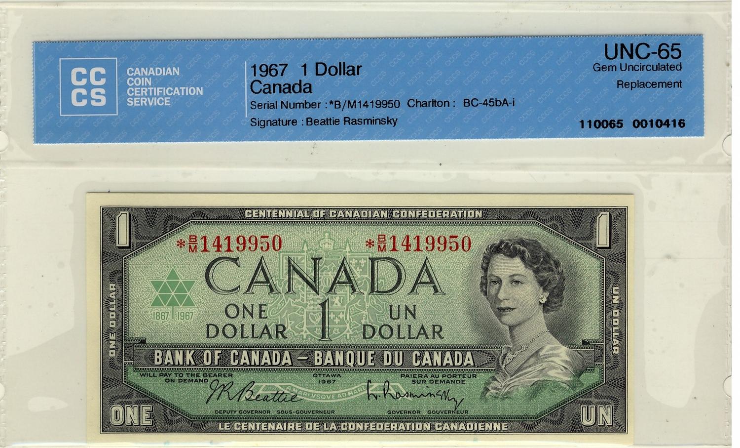 1967 $1 BC45bA-i #*BM1419950 CCCS UNC65.