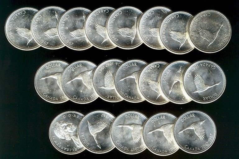 1967 $1 BU Roll. Lot of 20 coins in plastic Tube. All brilliant/lustrous, some with tones. UNC to MS.