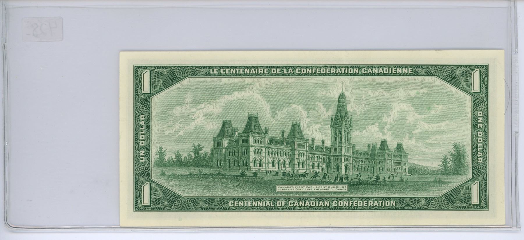 1967 $1. Beattie-Rasminsky signatures. S/O Prefix. Serial Number 3576777. Gem Uncirculated.