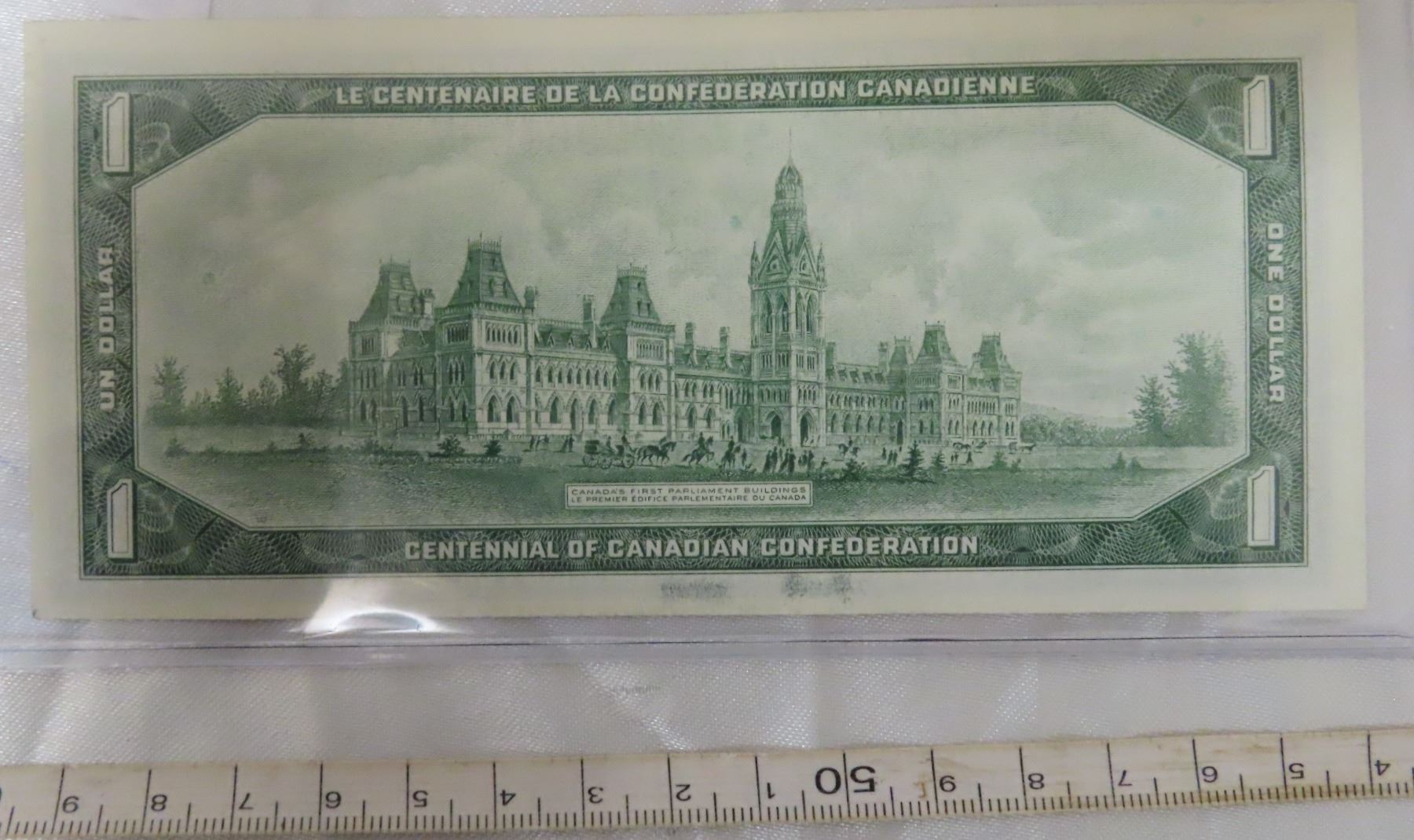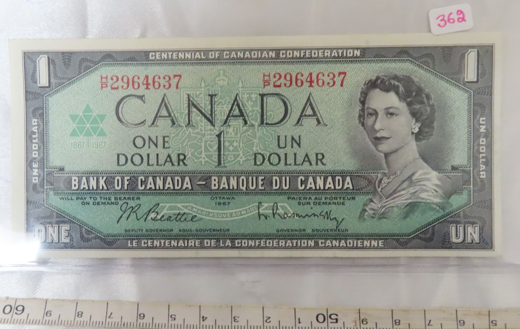 1967 $1 Centennial Note with Serial Numbers. Beattie-Rasminsky signatures. H/P Prefix. Uncirculated.