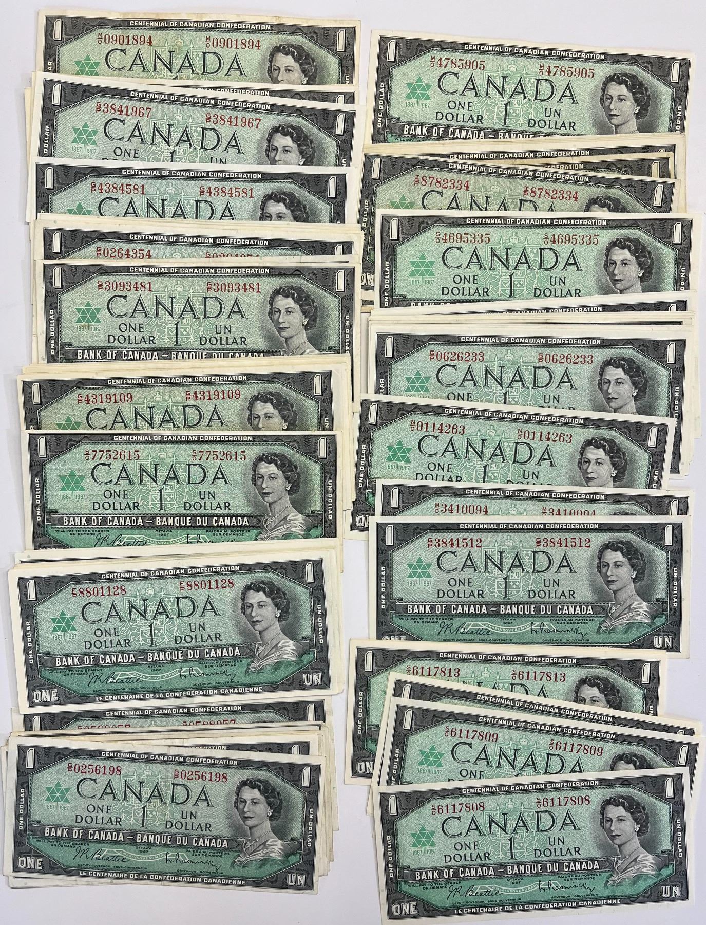 1967 $1 Centennial notes With S/N. Various Prefixes. Lot of 80 notes VF to Unc.