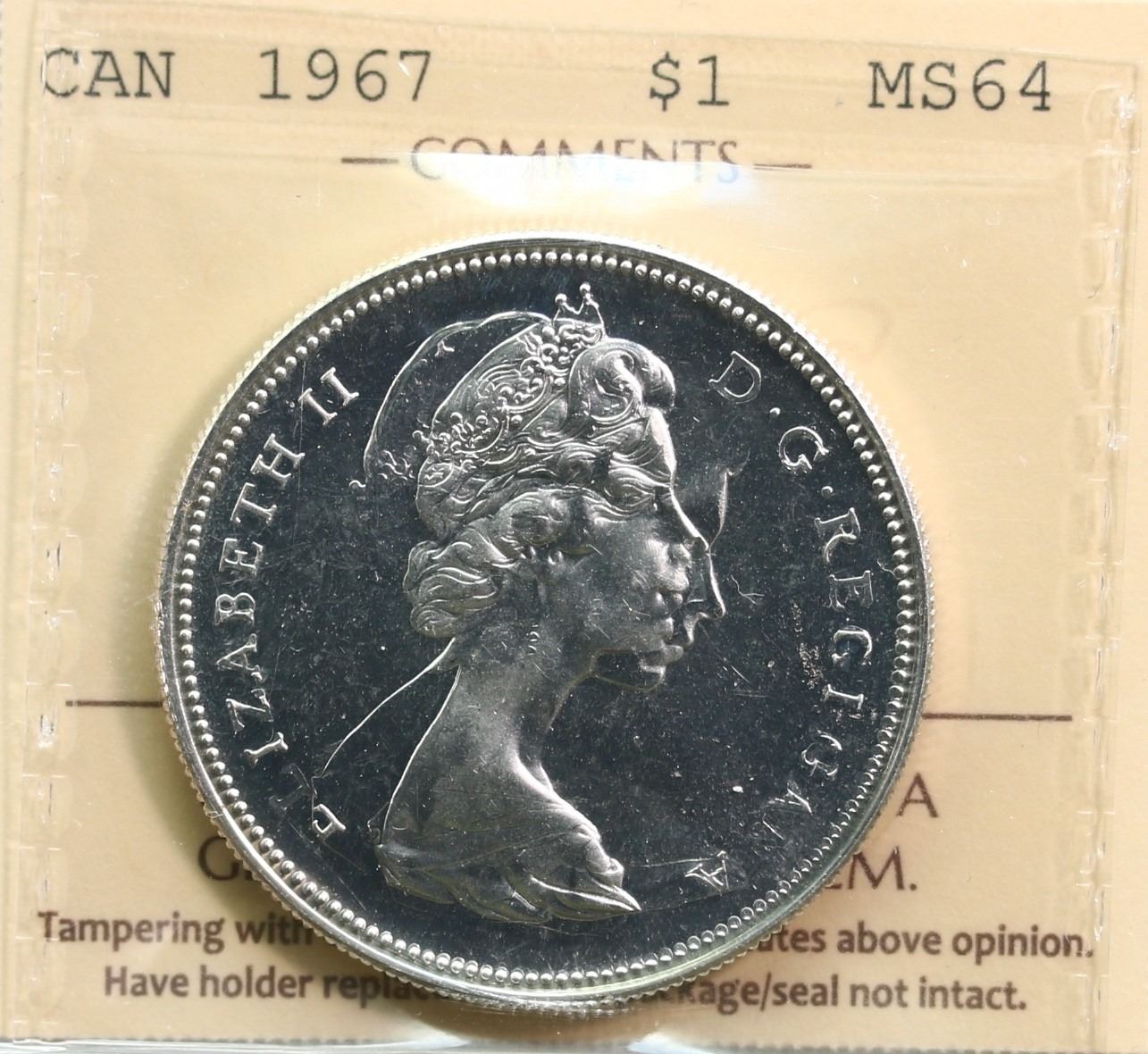 1967 $1 "Dbl Struck" ICCS Choice Mint State-64 Fully brilliant and lustrous.