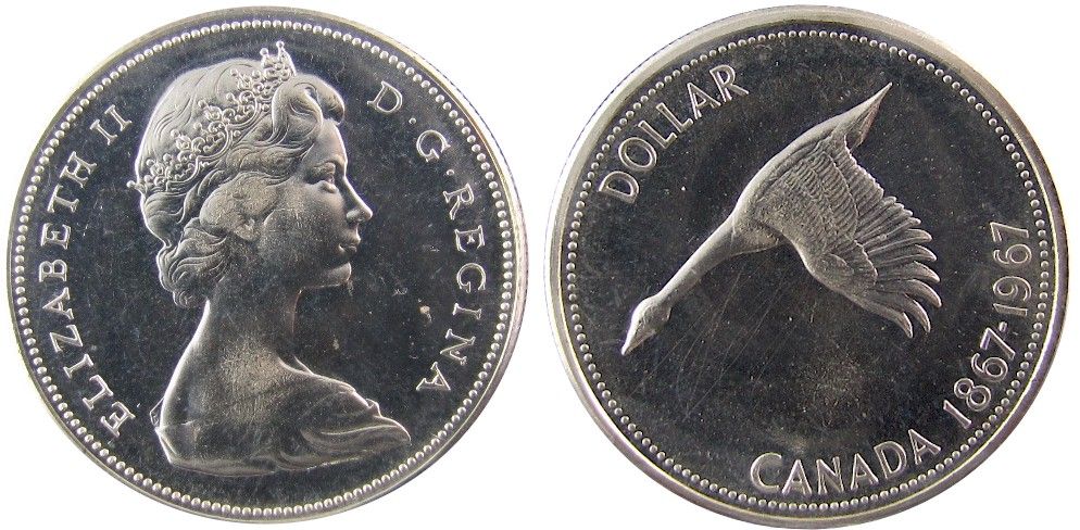 1967 $1 Diving Goose ICCS MS63. Looks much better, blast white.