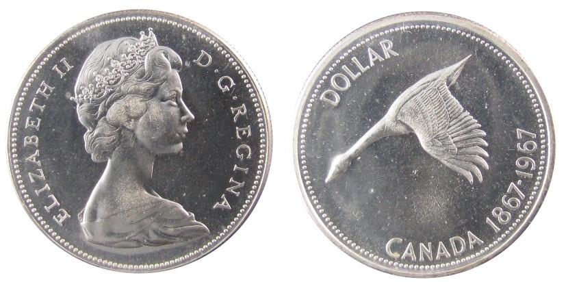 1967 $1 Diving Goose ICCS MS64. Great reflective surfaces. Very nice example.