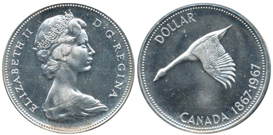 1967 $1 Diving Goose ICCS MS65. Attractive full white and mirror like issue.