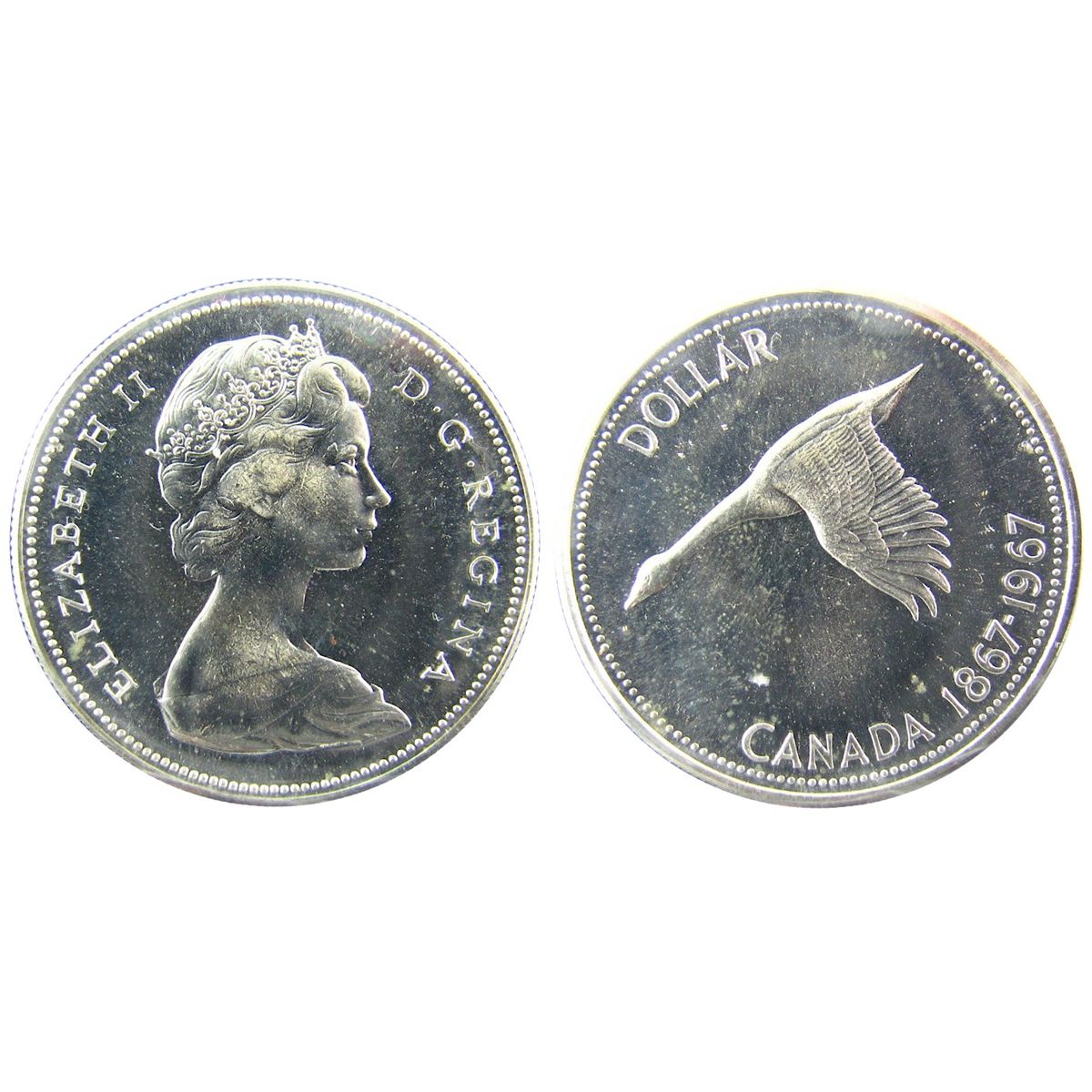 1967 $1 Diving Goose ICCS MS65 Fully brilliant and lustrous. A very nice Gem example of this sought after variety.