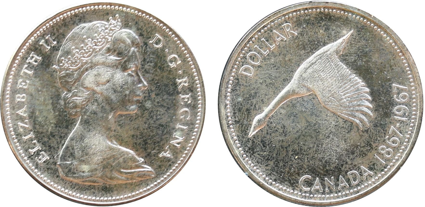 1967 $1 "Diving Goose" Uncirculated or better. Popular and sought-after variety. Expect spirited bidding.
