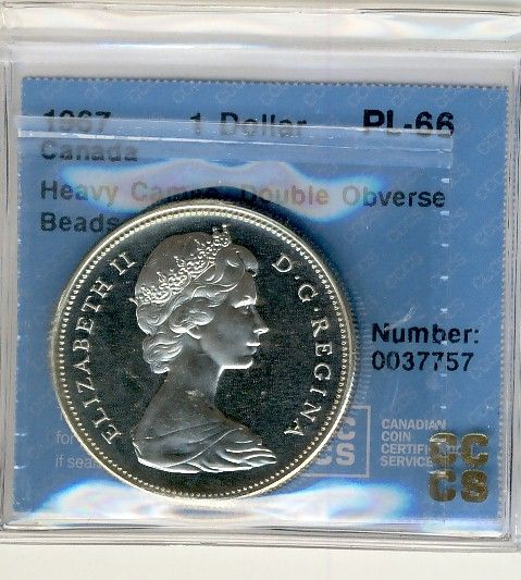 1967 1 Dollar, CCCS PL66; Heavy Cameo, Double Obv.
