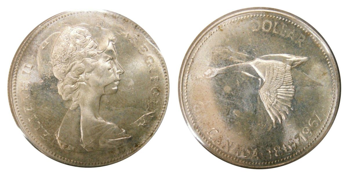 1967 $1 Double Struck ICCS MS64. Well struck and visible error example. Full white example.