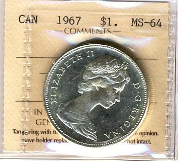 1967 $1 ICCS MS64 Cameo.