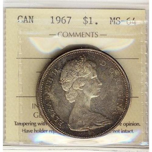 1967 $1 ICCS MS64. Nicely toned.