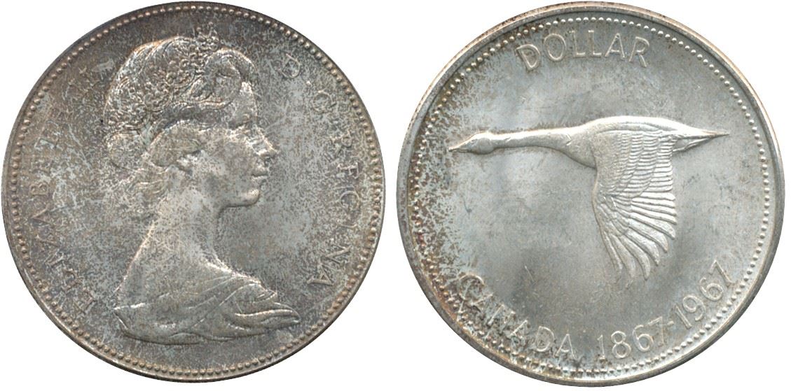 1967 $1 ICCS MS66. Super Gem speckled golds and reds. Attractive piece.