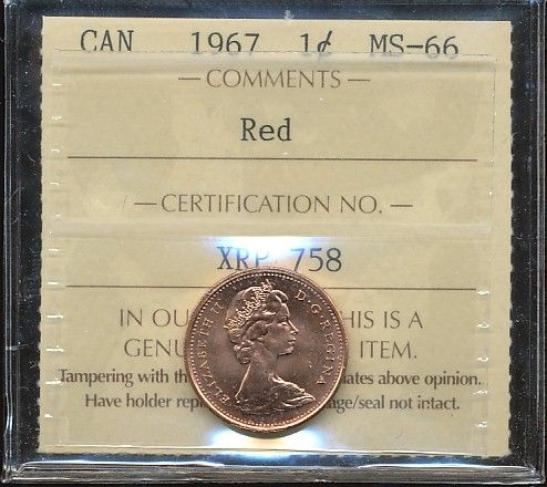 1967 1¢ ICCS MS66RD. Gem full red issue.