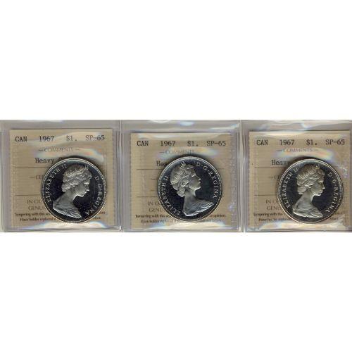 1967 $1 ICCS SP-65 HEAVY CAMEO, lot of 3 coins