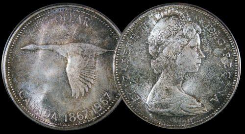 1967 $1 PCGS MS65. Medium tone over full underlying luster. Popular date.