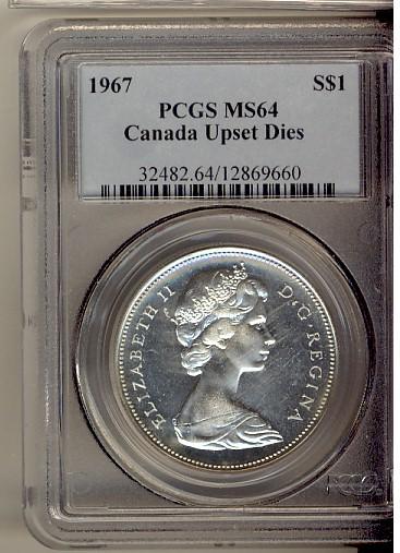 1967 $1 Upset Dies (Diving Goose) PCGS MS64. Blast White.