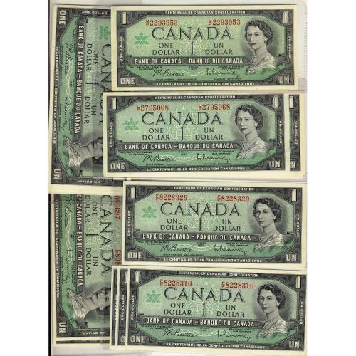 1967 $1 issues. BC-45b. Lot of 30 notes with various serial numbers and prefixes. AU to gem Unc.