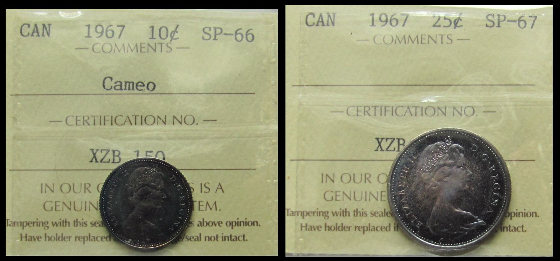 1967 10¢ SP66 & 25¢ SP67. Lot of 2 coins both with deep tones.